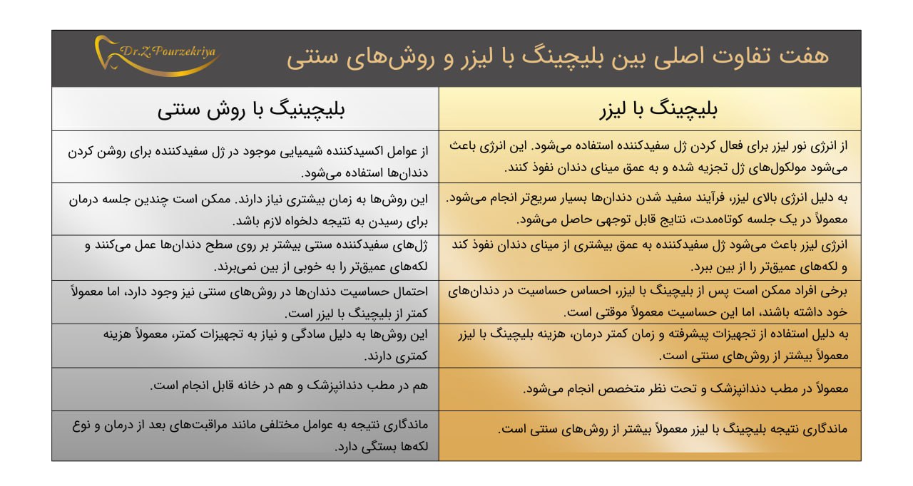 مقایسه بلیچینگ با لیزر و روشهای سنتی سفید کردن دندان